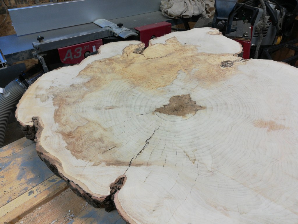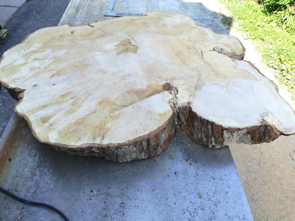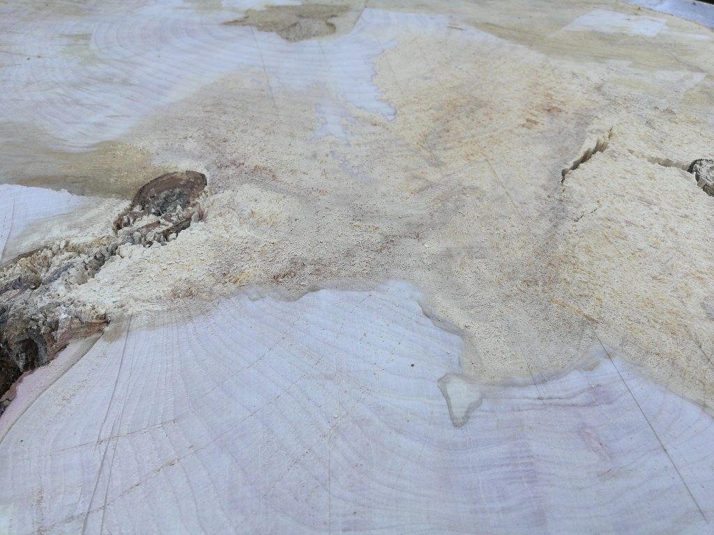 I used a hand plane to plane the surface of the table flat. I then realized the right side of the wood was going to fall off due to the rot.