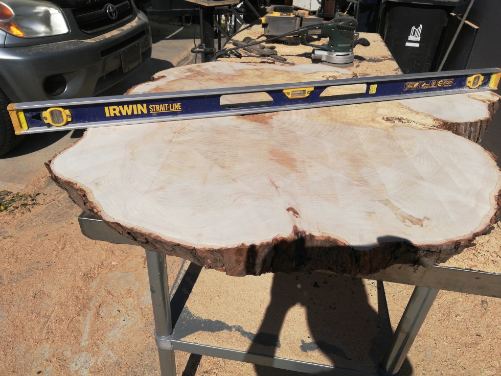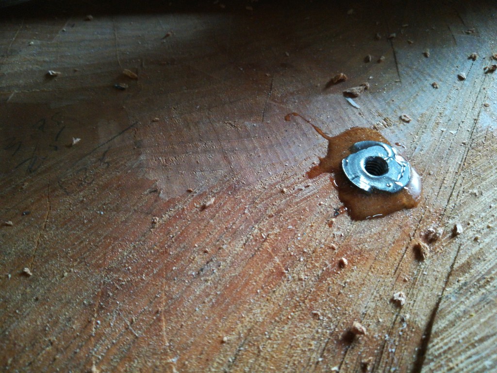Because the bottom of the wood was not planed to the same thickness, I had to improvise on the legs. I made one of the legs adjustable for level.