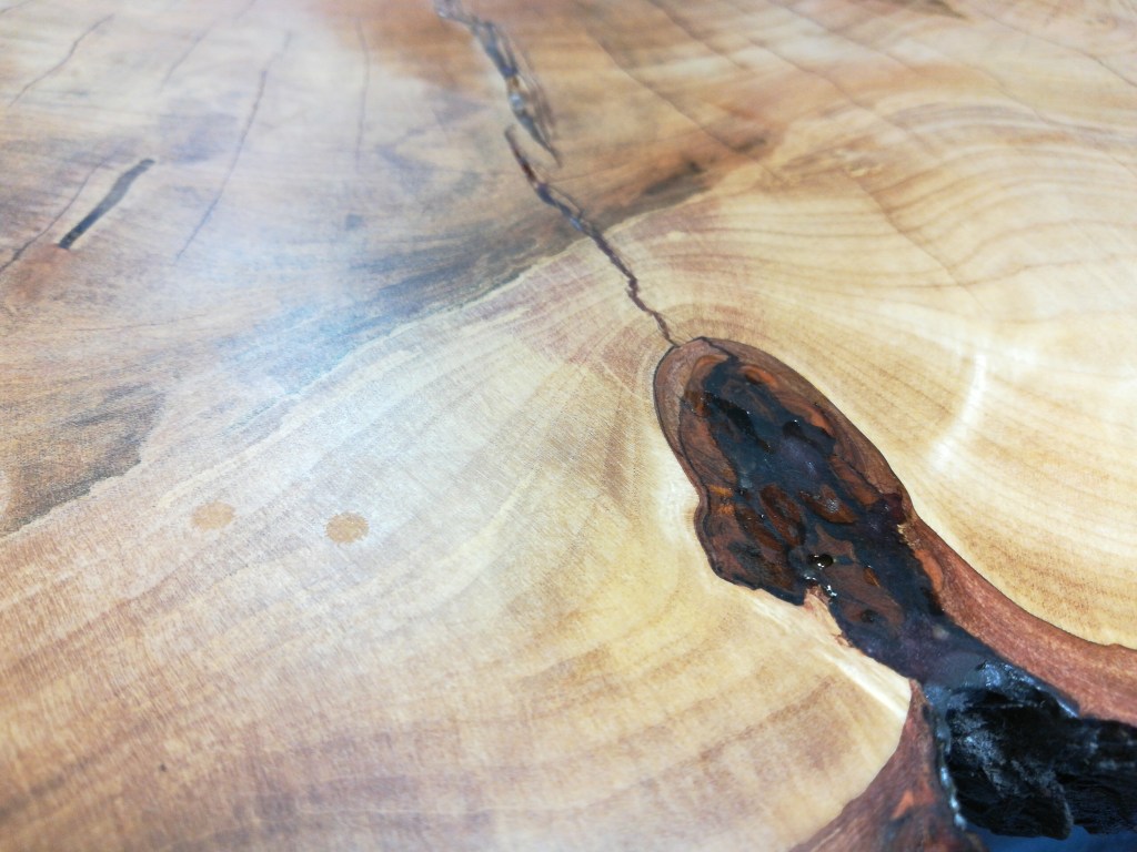 I sanded down the epoxy so it would only show up where it was needed and not on the rest of the table top itself.