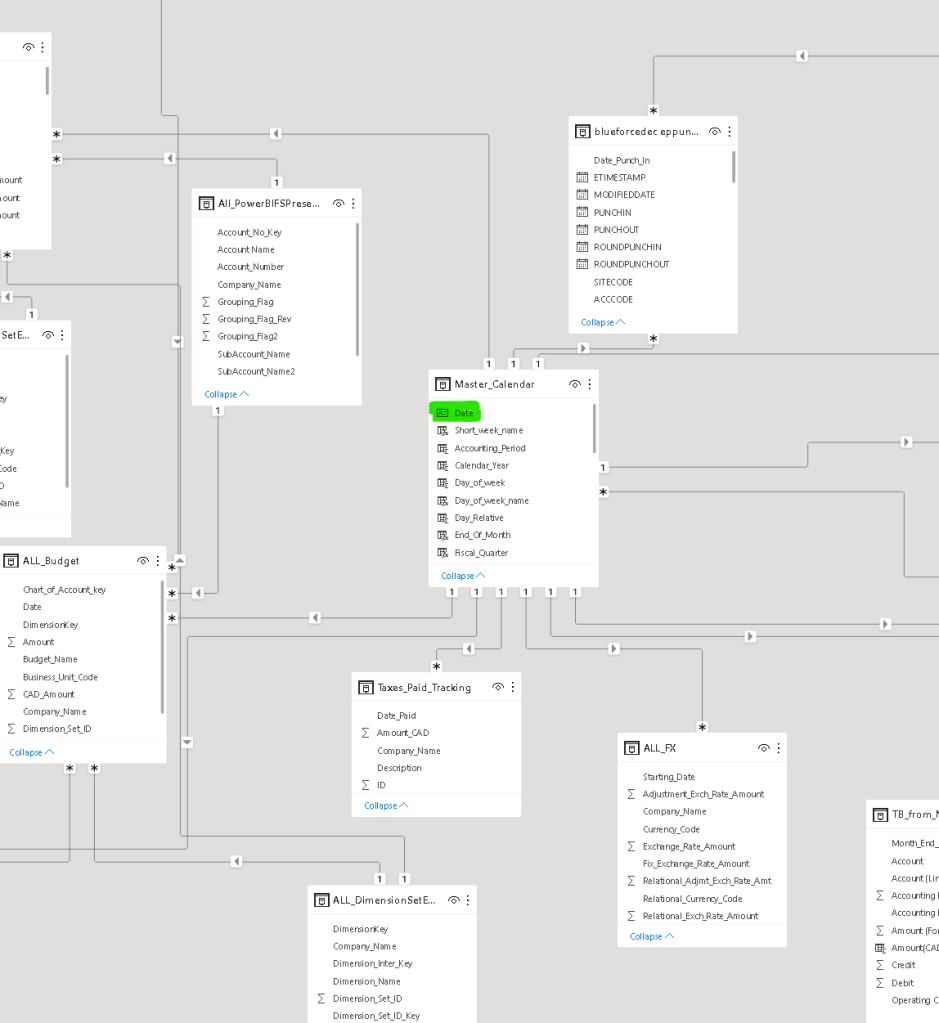 The Master Calendar is super important in PowerBI, especially if you want to run reports using relative dates or a series in time. Essentially all tables, should be linked to your master calendar via the date field.