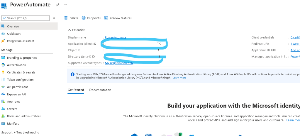 Click on the Overview tab, and make a note of the Client ID and Tenant ID. We will need those in a bit.