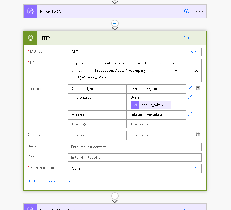 Note that I called my Parse JSON step Parse JSON DetailCustomer so remember to add an underscore for all the spaces. You might have named that step something else, so replace the title of that step with yours. If you are at a loss, you can get the title just by looking at the Parse JSON step